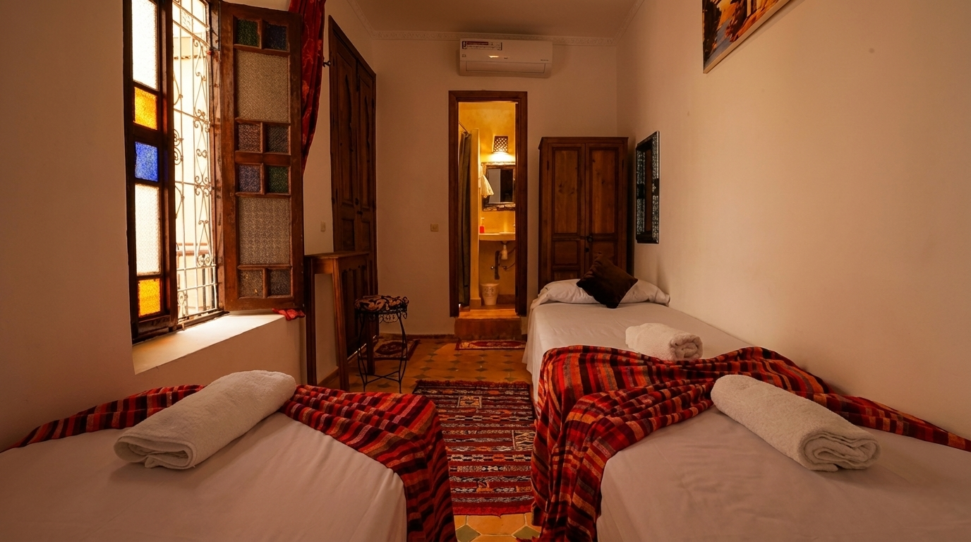 Each room is designed with authentic Moroccan style, comfort, and a warm, welcoming atmosphere.